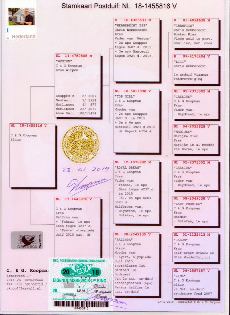 Rafał Wojdyła 11 grudnia 2019 NL-2018-1455816 ← 100% Gerard Koopman 100% Josef Weiss – linia Delbar →
