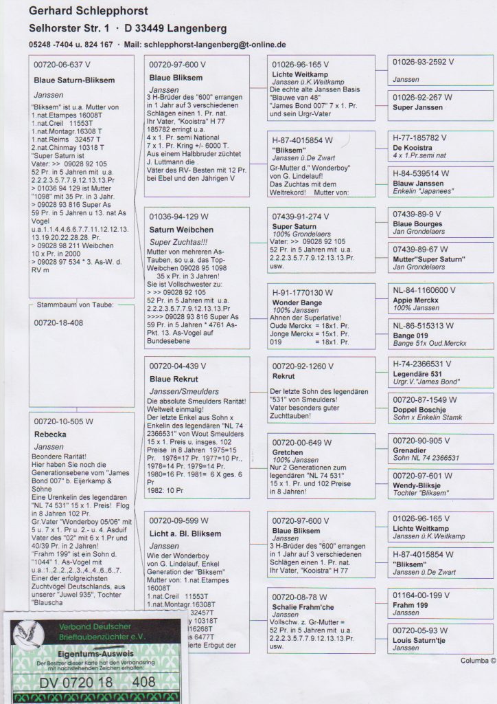 Category : Gerhard Schlepphorst-Janssen Vos-Stichelbout, Gołębie rozpłodowe