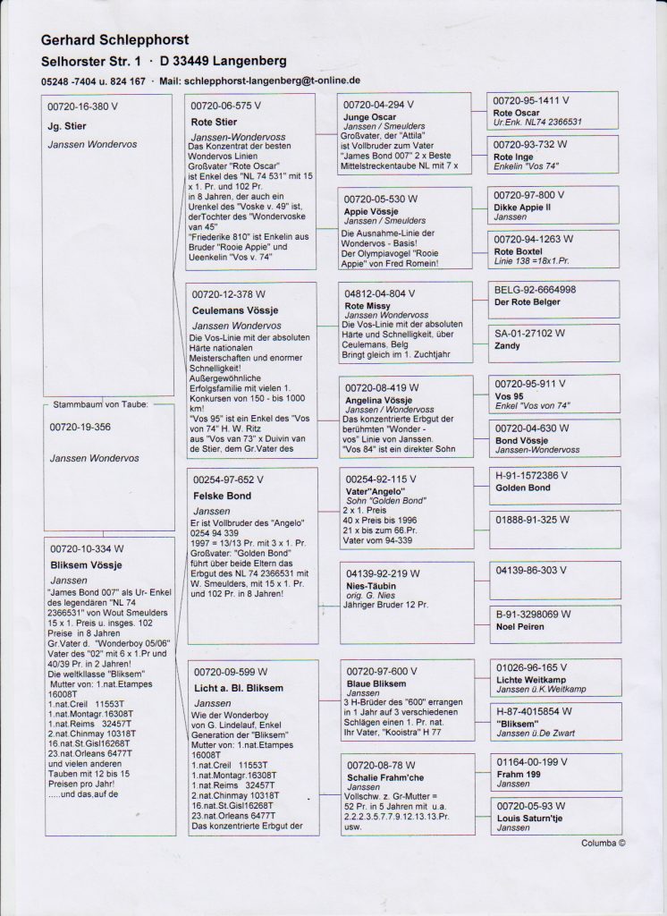 Category : Gerhard Schlepphorst-Janssen Vos-Stichelbout aukcje gołebi, gołębie Janssen, Gołębie rozpłodowe, gołębie Vos, Pary rozpłodowe, Schlepphorst, sprzedaż gołębi, Vos