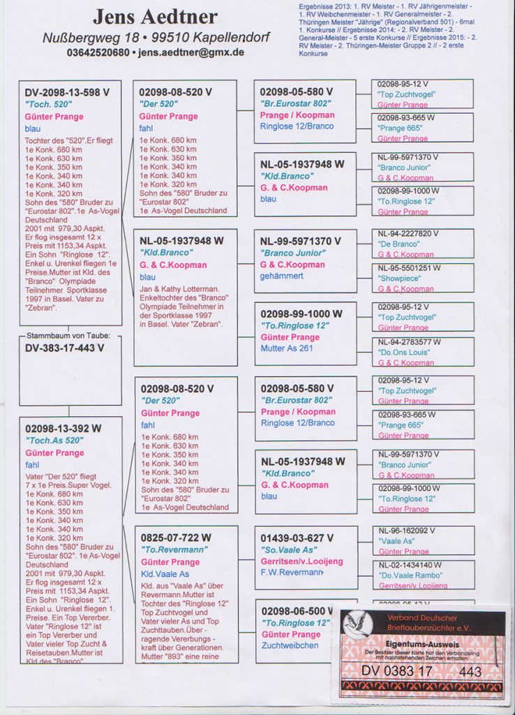 Rafał Wojdyła 8 sierpnia 2018 DV-0383-17-443 ← 100% Hartmut Will – linia Gunter Prange – syn 864 x córka 864 100% SG Bohn B+B + Zeberer – linia Eurostar Gunter Prange – syn 802 x córka 802 →