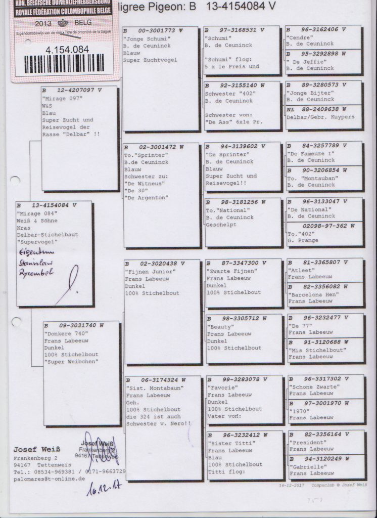 Rafał Wojdyła 31 sierpnia 2018 B-13-4154084 ← 100% Josef Weiss – linia Stichelbout / Paul Lenaerts 100% Josef Weiss – linia Jan Aarden , DV-0540-16-297 (0) →