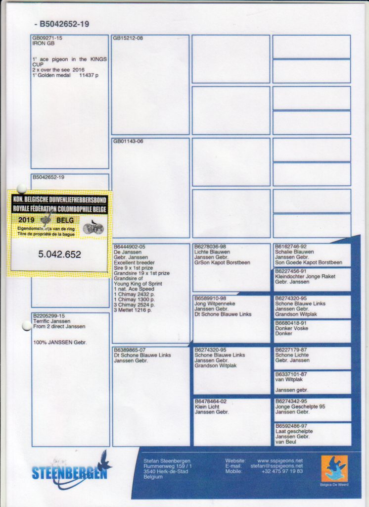 Category : Stefan Steenbergen aukcje gołebi, gołębie Janssen, Gołębie rozpłodowe, Pary rozpłodowe, sprzedaż gołębi, Stefan Steenbergen