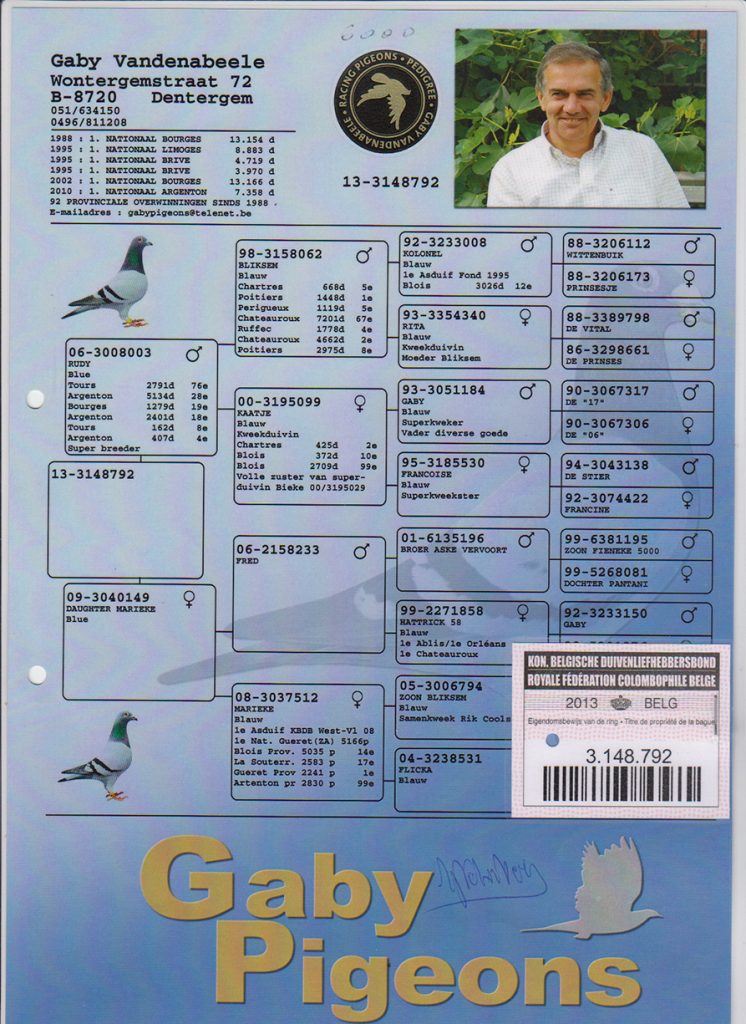 Rafał Wojdyła 8 sierpnia 2018 B-13-3148792 ← 100% Vandenabeele – linia Bliksem / Neptunus – wnuczka 100% Josef Kusser – linia Olimpiade 003 x Kannibaal →