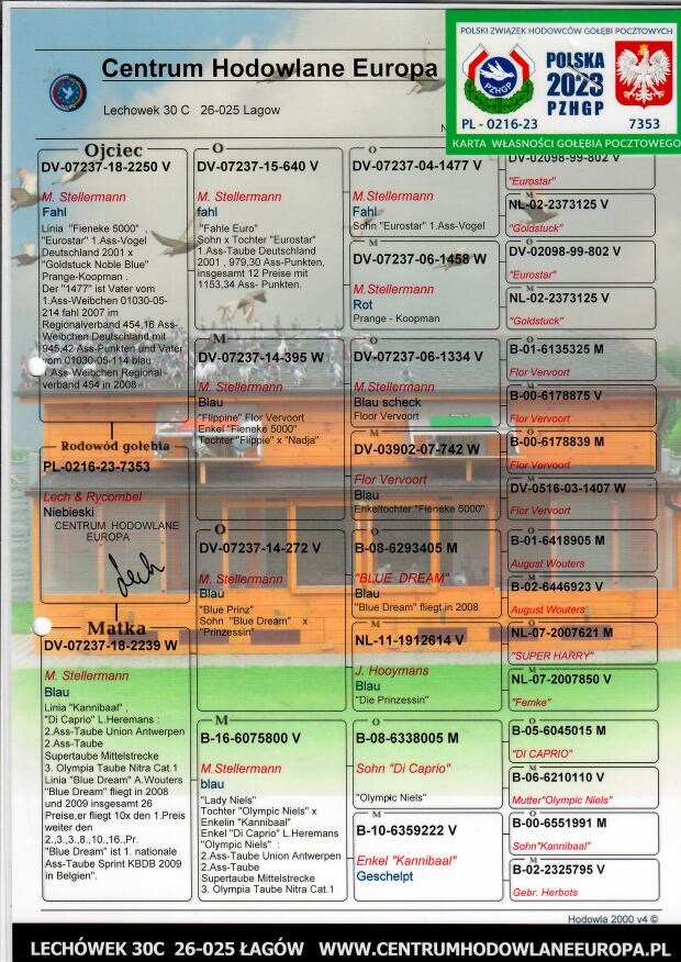 Więcej informacji o pochodzeniu gołębia w rodowodzie lub pod numerem telefonu :